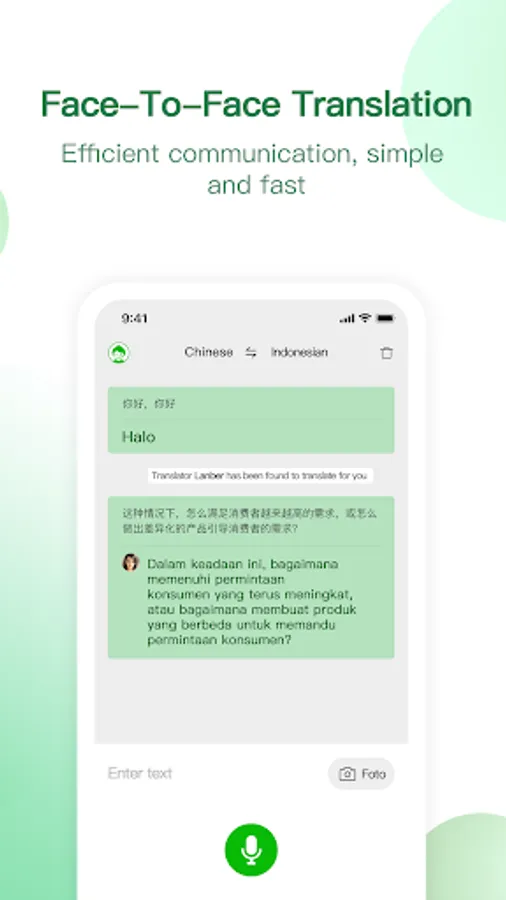 -Multilingual translation: Support the translation of Chinese, English, Indonesian and other popular languages, covering common language pronunciation services.-Photo translation: connect artificial translation, one-click photo, and realistic translation.