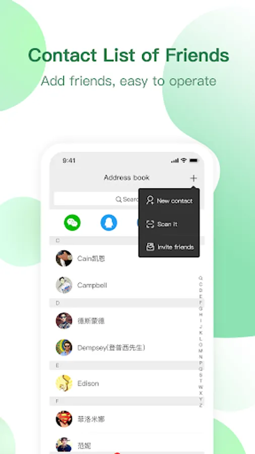 -Friend address book: quickly create a new friend address book, friend contact information is not lost.