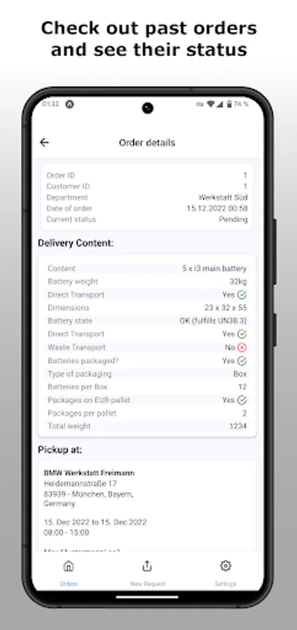 To improve this communication between our customers and LiBCycle is the purpose of this app. After contacting us directly via mail or phone, we can arrange contract details and provide you with login details for the app. This then allows you to request transports via a simple form, which gives us all the information we need for a successfull battery transport.