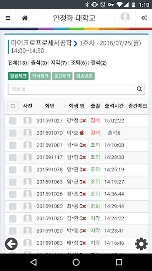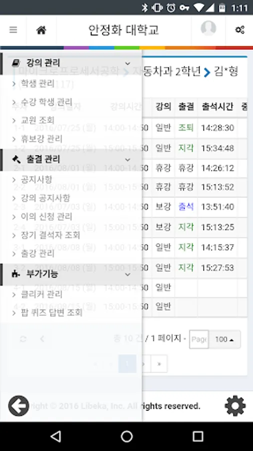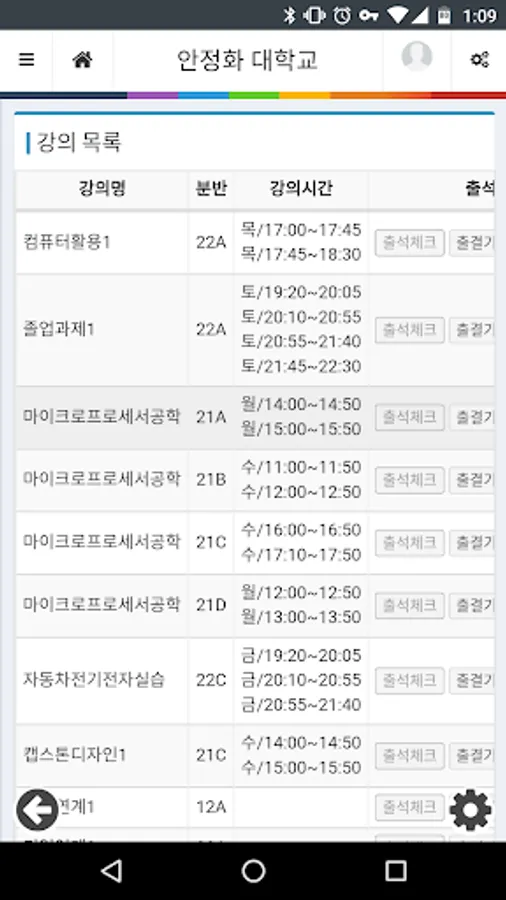 교수님 앱은 Hybrid App으로 구현하여 메뉴체계 및 사용방법이 웹기반 출결시스템인 PC버전과 동일 함으로서 교수님 사용에 부담감 없이 사용하도록 구현하였고, 학생용 앱, 교수용 앱, Web기반 출결관리 시스템 모두, 외국인 학생 및 외국인 교수님을 위한 다국어 버전을 적용하였습니다.
