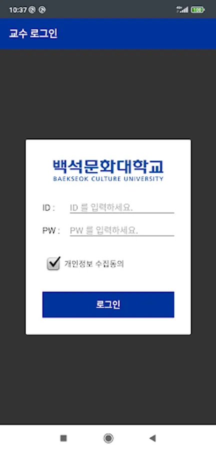 It is a smart attendance app used by Baekseok Cultural University for professors.