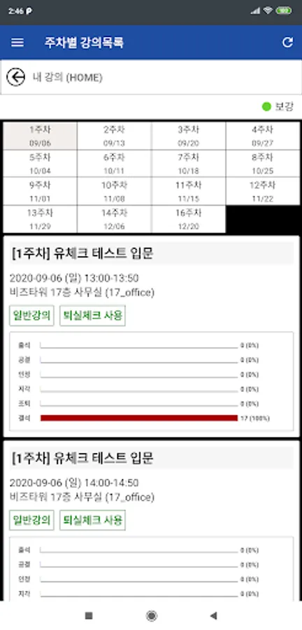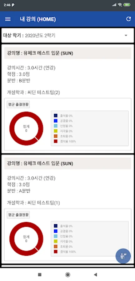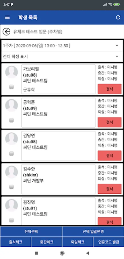 By selecting'Electronic Attendance System' on the initial screen, you can manage attendance by lecture and use various functions.