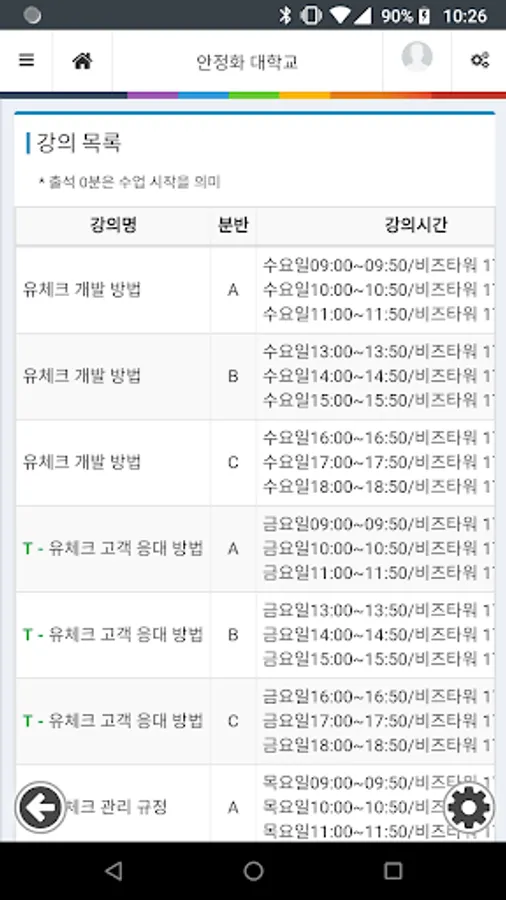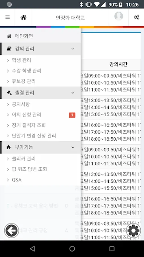 Professor 's app is implemented in Hybrid App, so menu system and usage method is the same as PC version which is web - based attendance system, so that it can be used without any burden to use by professor. All of student app, professor app, And a multilingual version for foreign professors.