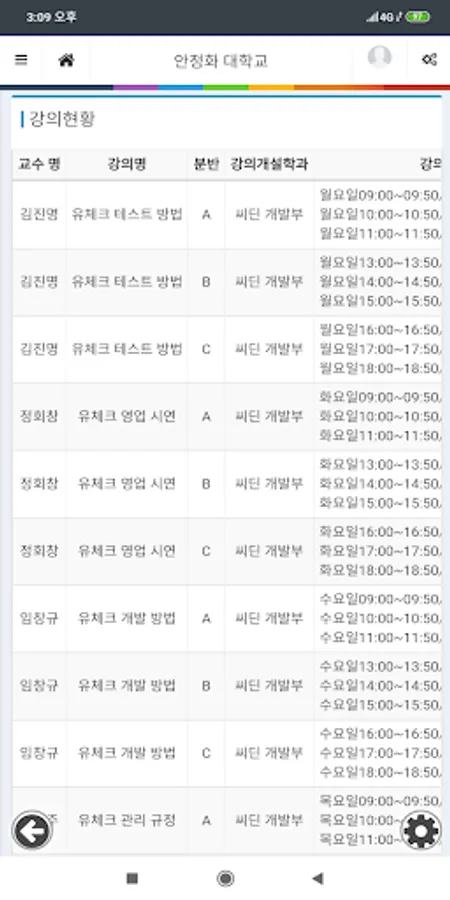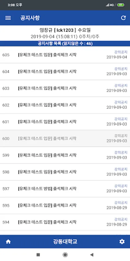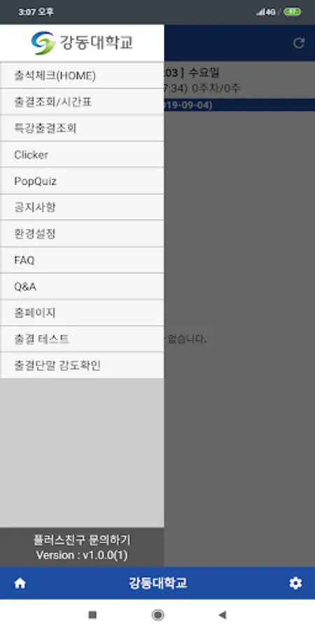 또한 출석체크에 수반되는 출결조회나 이의신청, 공지사항 확인은 물론 푸시 메세지도 제공하고 있습니다.