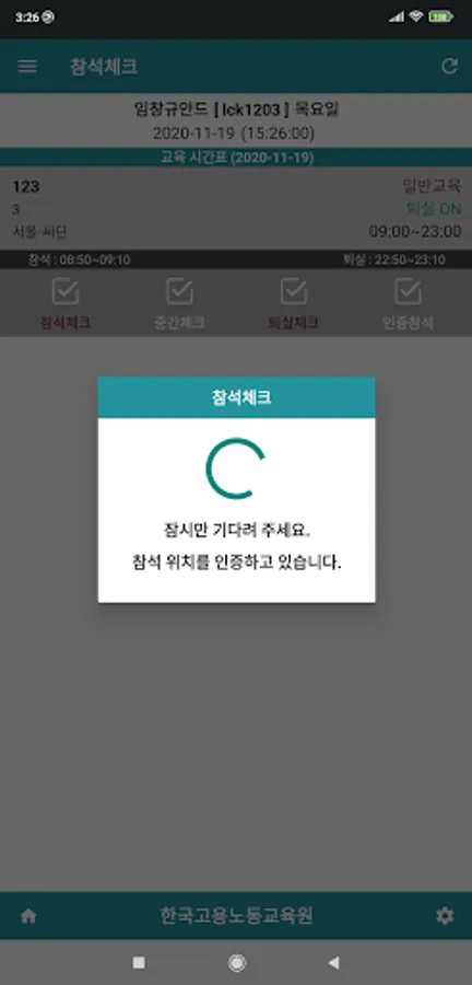 Korea Employment and Labor Education Institute mobile attendance system KELI mobile attendance application for trainees.