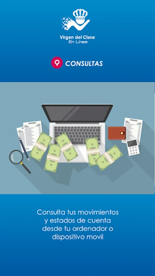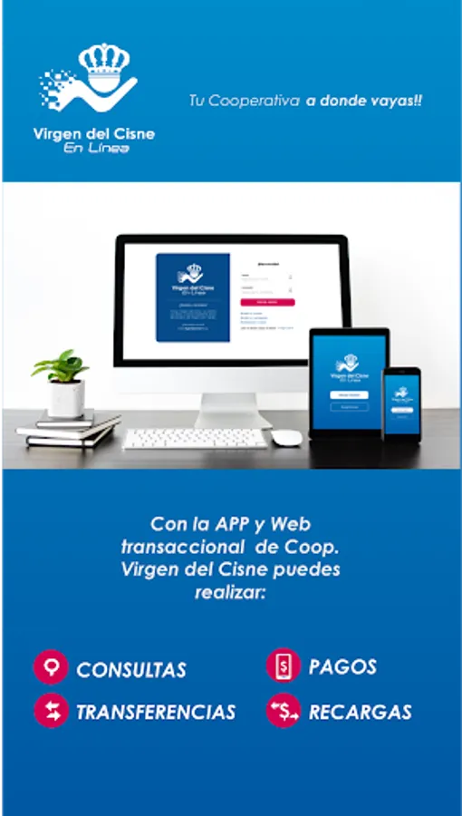 Cooperativa Virgen del Cisne is a mobile application for inquiries, payments, and SPI and internal bank transfers