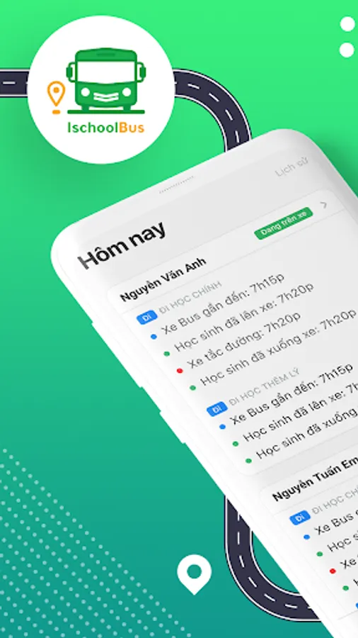 Quản lý danh sách xe, danh sách học sinh đăng ký, học sinh đang trên tuyến xe, tài xế và tuyến xe