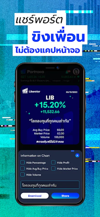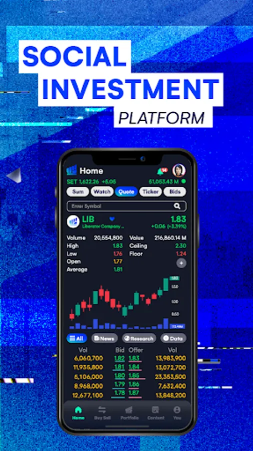 Welcome to Liberator, a premier Social Investment Platform, an industry-first in Thailand. Liberator is your gateway to the world of investing, providing you with the ability to trade stocks, including Thai stocks, and TFEX without incurring any commission per transaction.