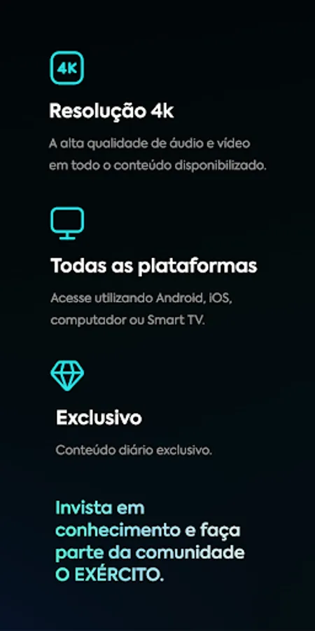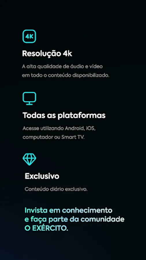 "The Army" is a community, through an application, for training information agents who do not want to depend on traditional media and biased content from Schools and Universities to understand the world. In it, there is constant publication of really useful content and there are 4 main frames:
