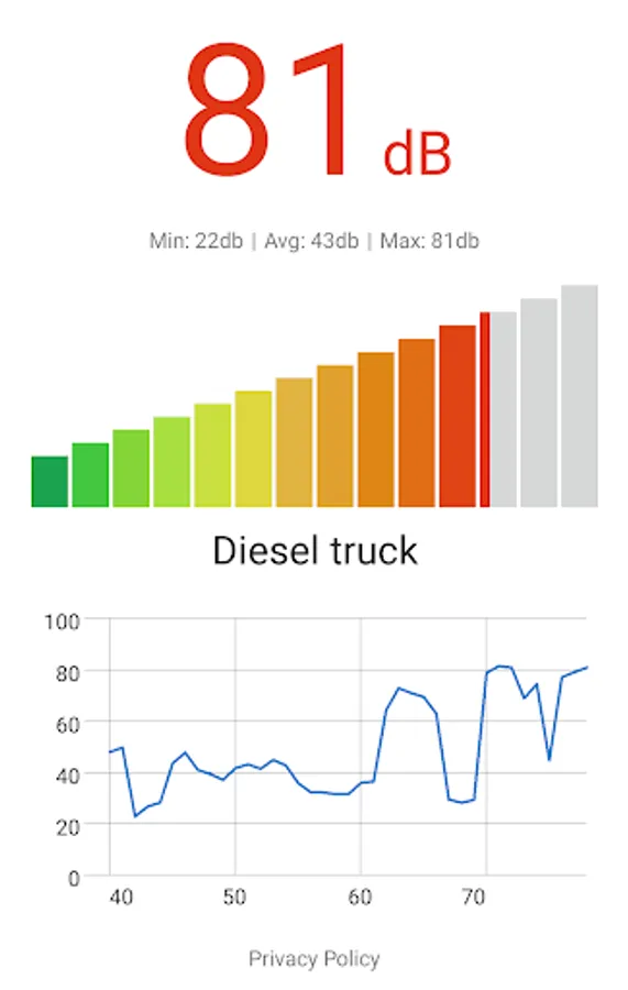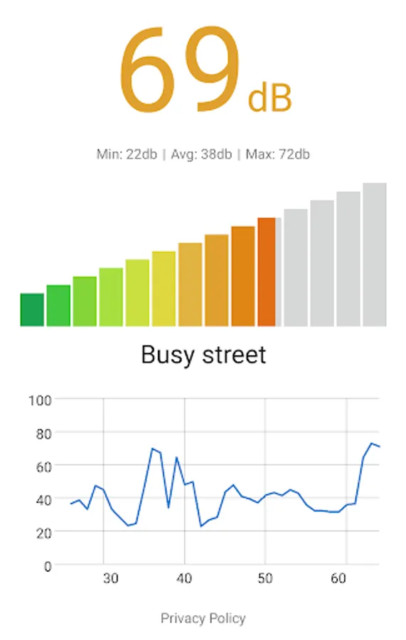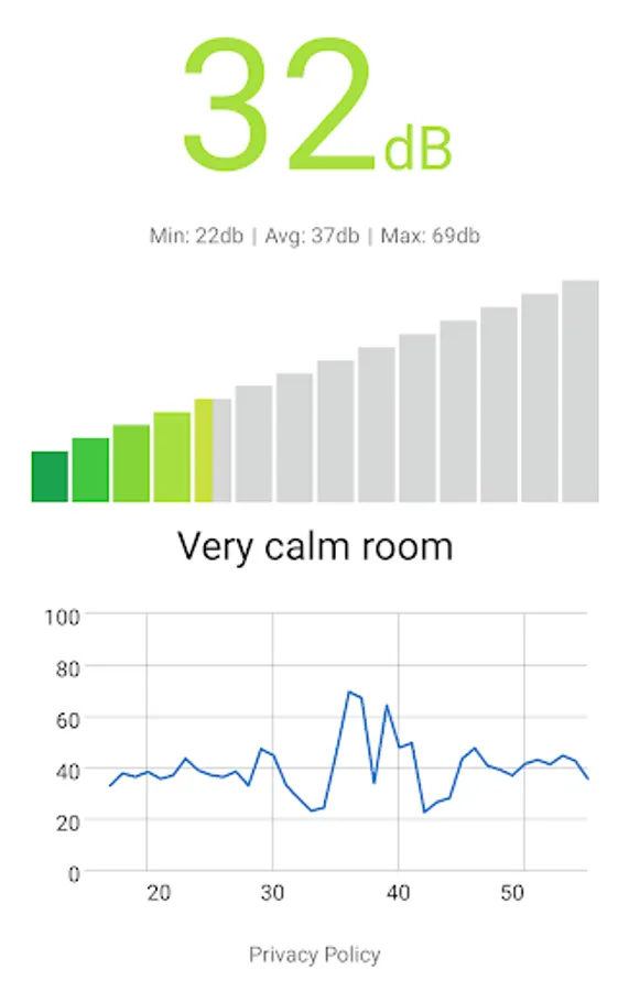The Decibel Meter app shows you the noise level in your environment. Just open the app and it will start working automatically. The app also provides a chart that shows the values read by the sensor. It's a light, simple and effective app.