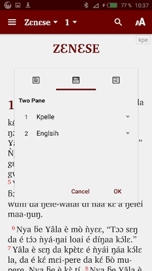 - "two panes" to display the Kpelle at the top and the English version at the bottom