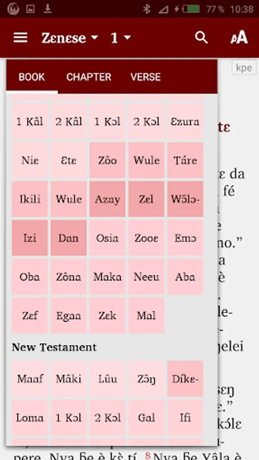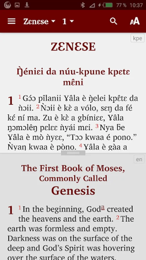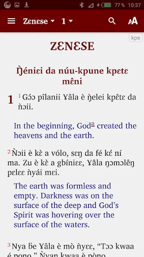 - "verse by verse" to display a verse in Kpelle followed by the same verse in English.