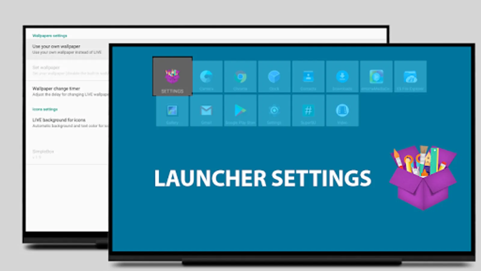 SimpleBox - a new minimalistic launcher (home screen) for Android TV set-top boxes, TVs and tablets.