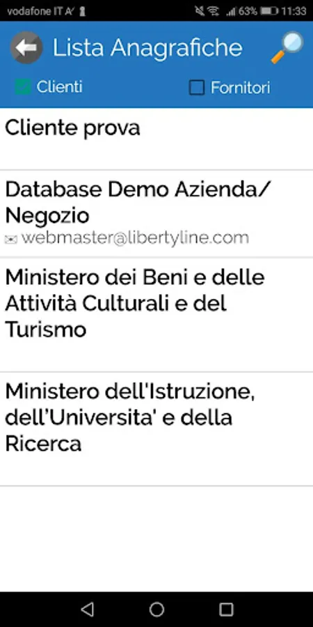 It will be possible to have the warehouse, the customers, and the schedule of one's own company. To activate this APP you have to go to FILE -> LibertyCommerce APP -> Synchronize.