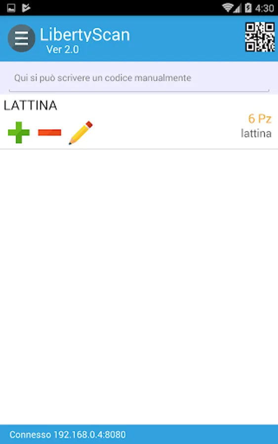 LibertyScan was created to be used in harmony to our management software LibertyCommerce, if you configured the IP of the machine where the program is installed, the app will retrieve every read the related article (regular information, with lots or size and color ). Alternatively, the app also will store the codes scanned by managing them as articles unnamed.