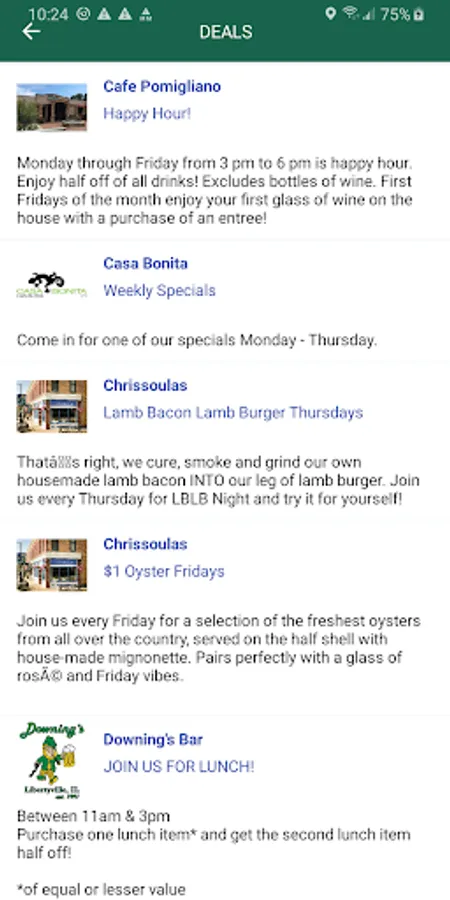 Visiting Libertyville? This is the official MainStreet Libertyville guide for instant access to everything you need to ensure a memorable visit. Get up-to-date details on events and businesses plus special offers and promotions. Search for restaurants, shops, services, military savings, parking, deals & more. Save your favorite places for quick access to the places and events you love!