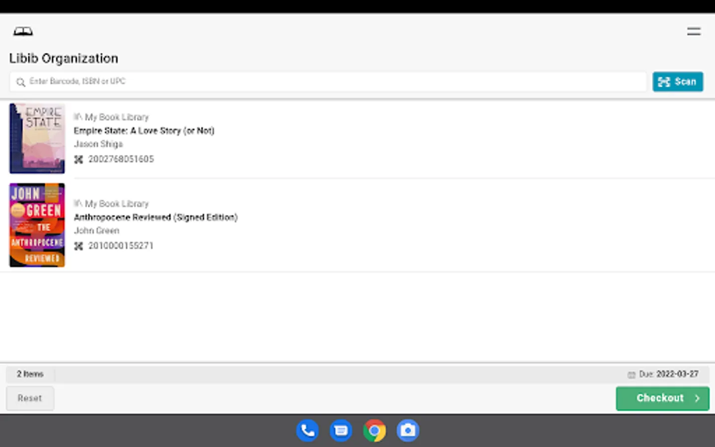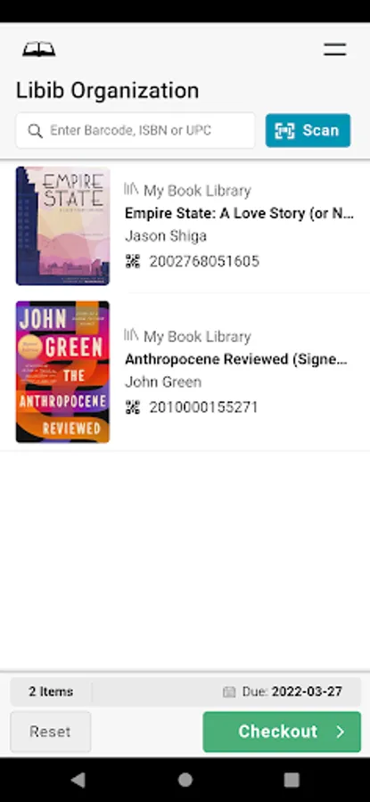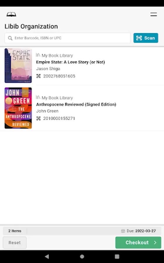 Libib Kiosk Pro allows Pro users of Libib to setup an external kiosk app in their library for their patrons to self-checkout any cataloged items with a barcode.