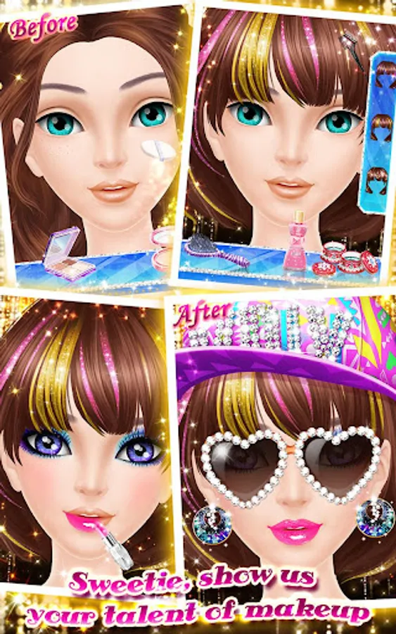 Various haircuts, delicate accessories, styling glasses and dazzling cosmetics, all those things are offered to you, from soup to nuts. Wanna create a sweet and cute look? Or do you prefer to be an extraordinary rocker? Here, you can be the one as you wish. What's more, you can take a photo and sign your name to make it exclusive. Dear, a shining beauty like you shall always glitter. Come on! Let's makeup in style, and let's makeup for a while!