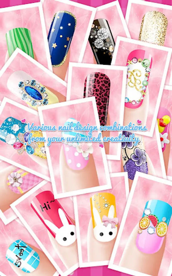 You could paint on different skin color, choose from loads of polish color collections, choose from absolutely tons of sparkling rhinestones, crystals, diamonds, gemstones, pearls, stickers, patterns, fimo, resin and much much more to decorate your nails, and you are welcome to choose the customized ones as well.