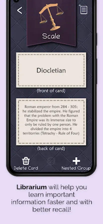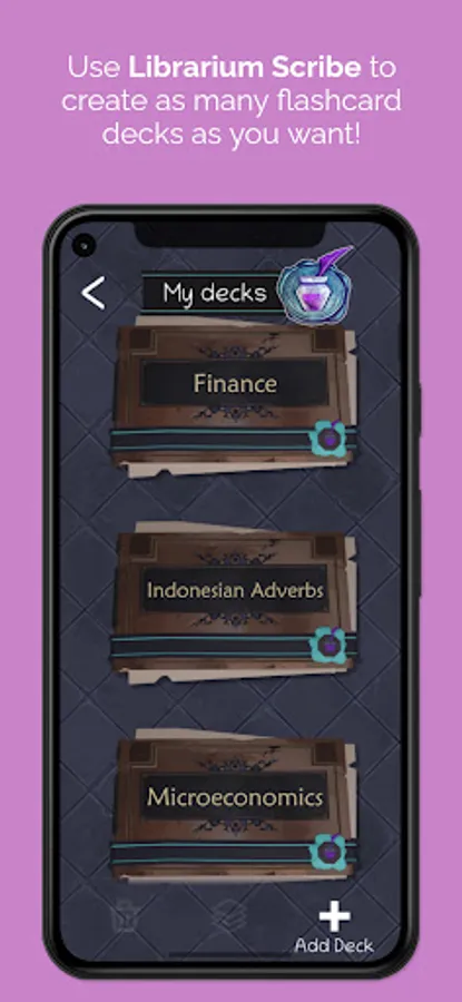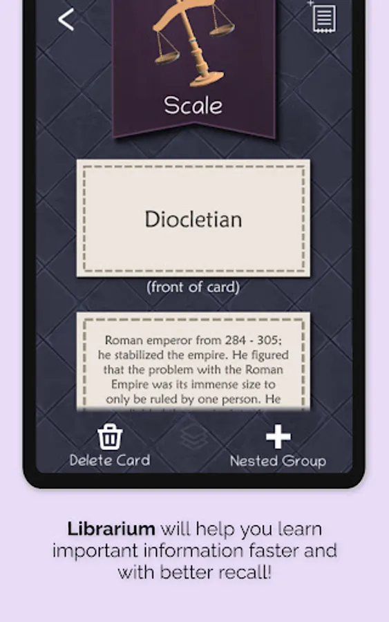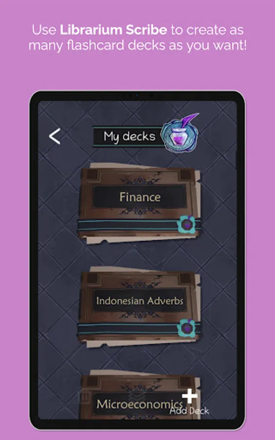 Librarium Scribe syncs with the virtual reality application called Librarium! This companion app allows users to create their own flashcard decks that will sync with the VR experience. Learn faster and with better retention by using Librarium!
