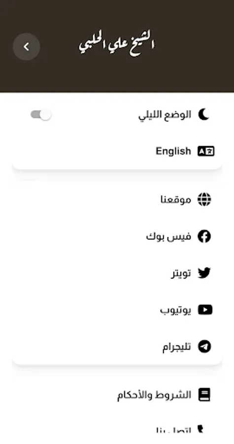 هذا تطبيق شامل لكل تراث الشيخ الكبير المحدث علي بن حسن الحلبي رحمه الله. تطبيق تراث الشيخ الحلبي يسير ومبسط يسهل على طالب العلم التنقل بين دروس الشيخ وكتبه وعلمه عن طريق الدخول الى منصة الدروس او الكتب او المحاضرات. وايضا يشمل تطبيق الشيخ العلامة علي الحلبي -رحمه الله- على ميزات لطيفة منها مشاركة النصوص والدروس عن طريق الوسائل الالكترونية، تصفح الكتب والبحث عنها عن طريق محرك البحث، مواقع الشيخ وصفحاته على اليوتيوب و تويتر و تلجرام و الواتس اب، خاصية اضافة وتصفح الملاحظات، القراءة الليلة والنهارية، وغير ذلك من الخصائص