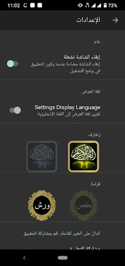• Choosing between the two recitations of Hafs and Warsh (and soon, God willing, the recitation of Shu'bah) and ease of change both affect them.
