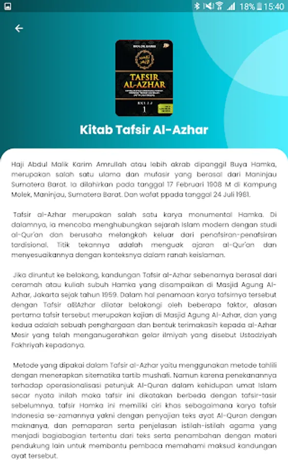 The Tafsir Library is an application that contains content in the form of commentary books, we have a variety of interpretations available, ranging from the Indonesian translation of the interpretation books to the Arabic interpretation books.