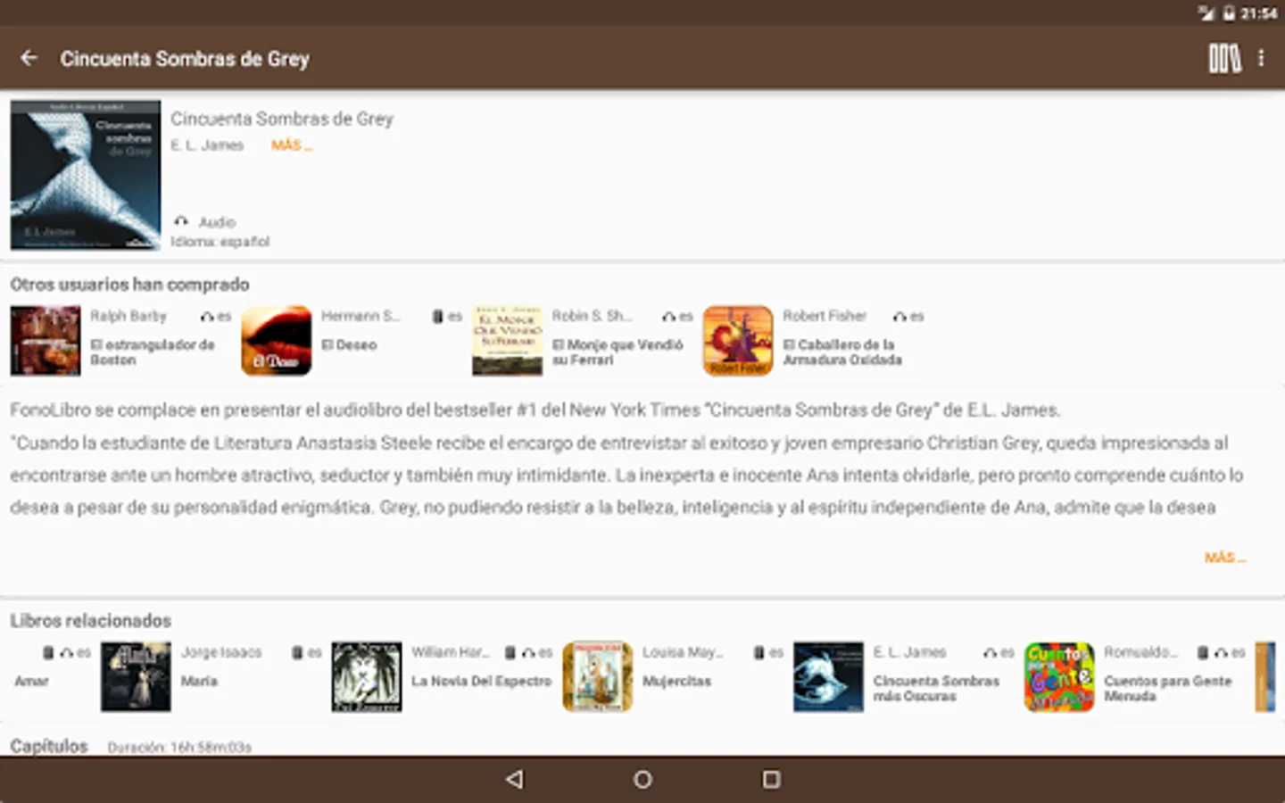 In this fantastic application you will find hundreds of books and audiobooks in Spanish. Moreover Book Mobile gives you a book every Sunday.