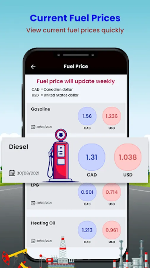 - Canadian Driving Tests give the fuel price details of gasoline, diesel, LPG, and heating oil.