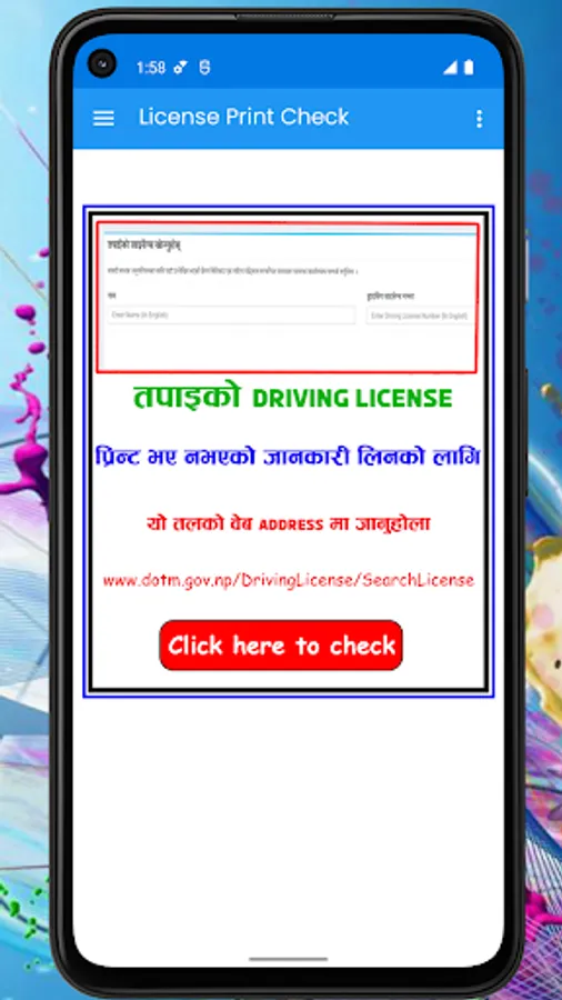 disclaimer: This is not a government app, and Driving License cannot be checked from this app, but this app has a tutorial on how to check your Nepali Smart Driving License has been printed or not.