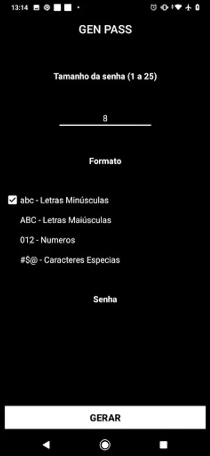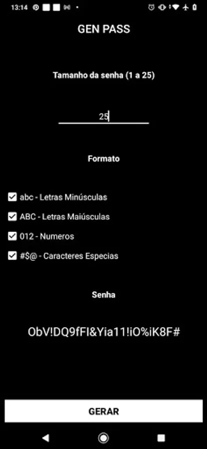 👾The Gen Pass is a password generator with practicality and speed, The app Generates passwords randomly and chosen characters, for greater security when creating your account on platforms.