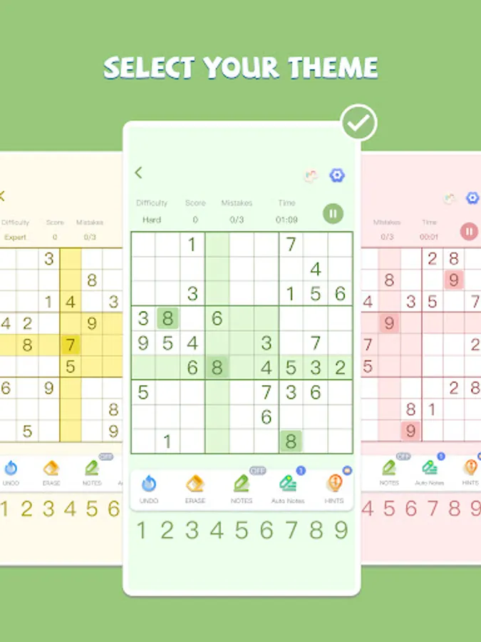 ✓ Automatically removes notes from all columns, rows, and blocks as soon as the numbers are placed.
