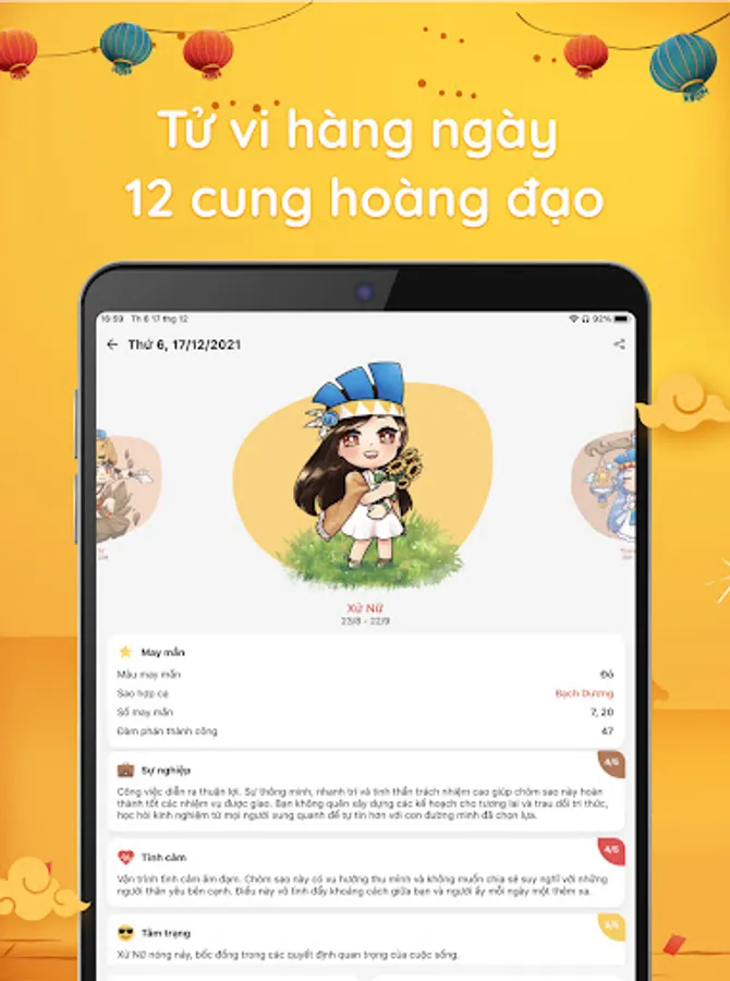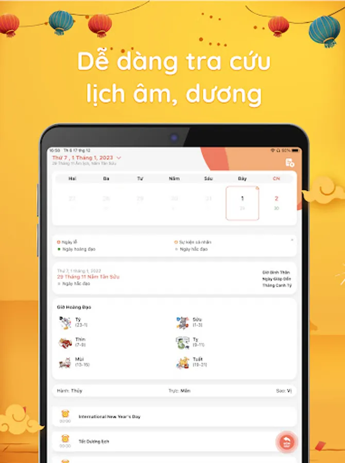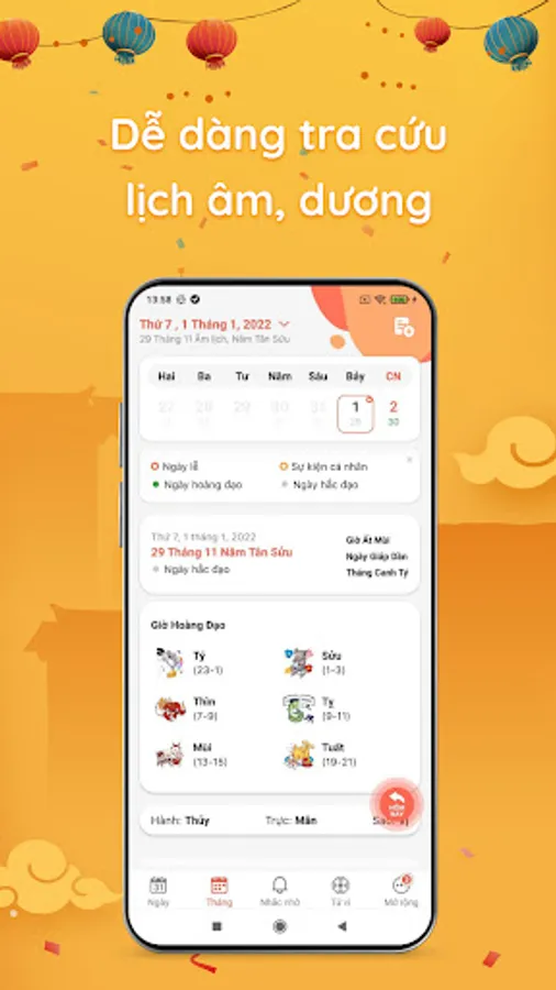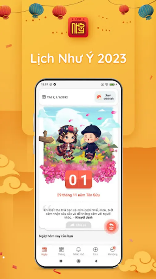 Nhu Y Calendar is a free application that combines the solar and lunar calendars. With an accurate calendar source, providing an objective view between Eastern divination and Western astrology. Users can refer to make decisions.