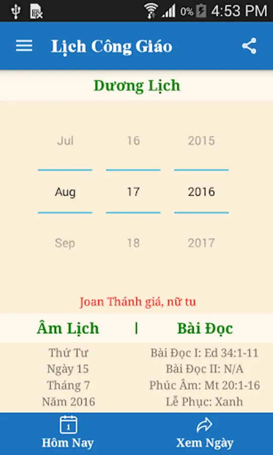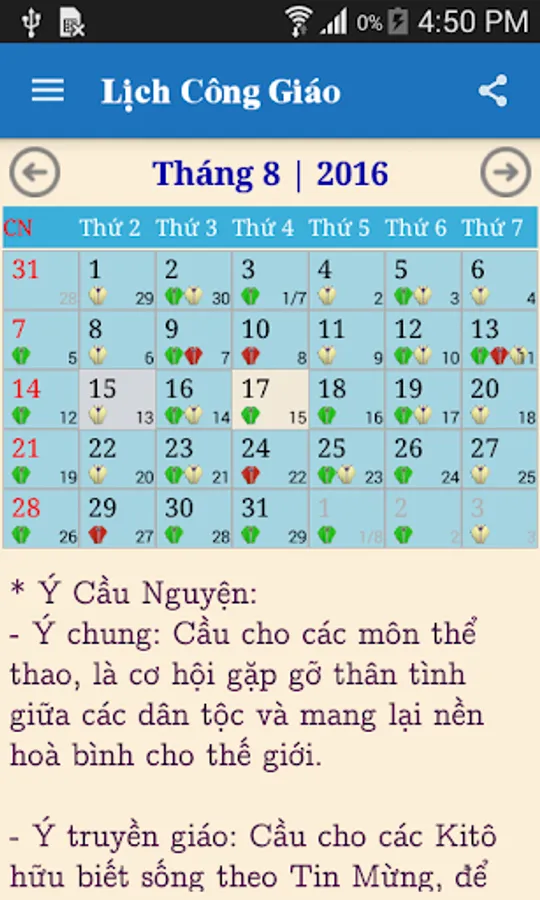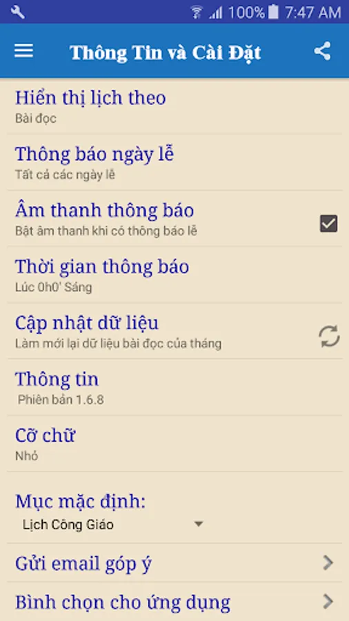 - Sau khi cập nhật lần đầu, ứng dụng Lịch Công Giáo có thể được sử dụng offline