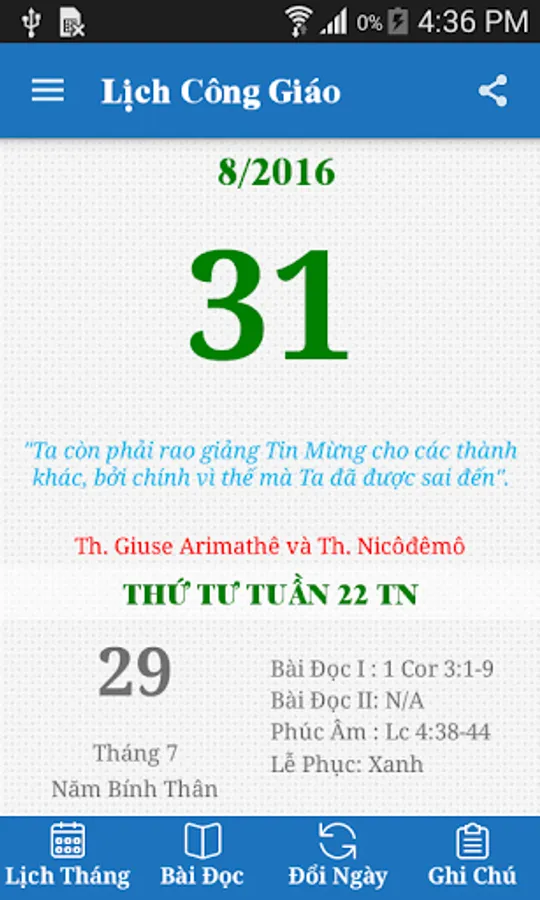 - Thông tin về bài đọc Lời Chúa trong ngày được cập nhật theo Lịch Phụng Vụ của Hội Đồng Giám Mục Hoa Kỳ