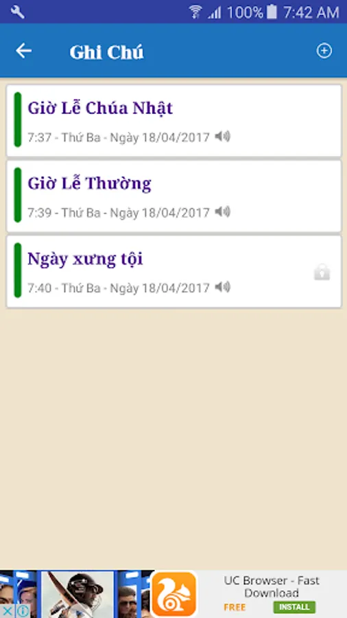 - Thông báo ngày lễ trọng, lễ kính và nhắc nhở ghi chú