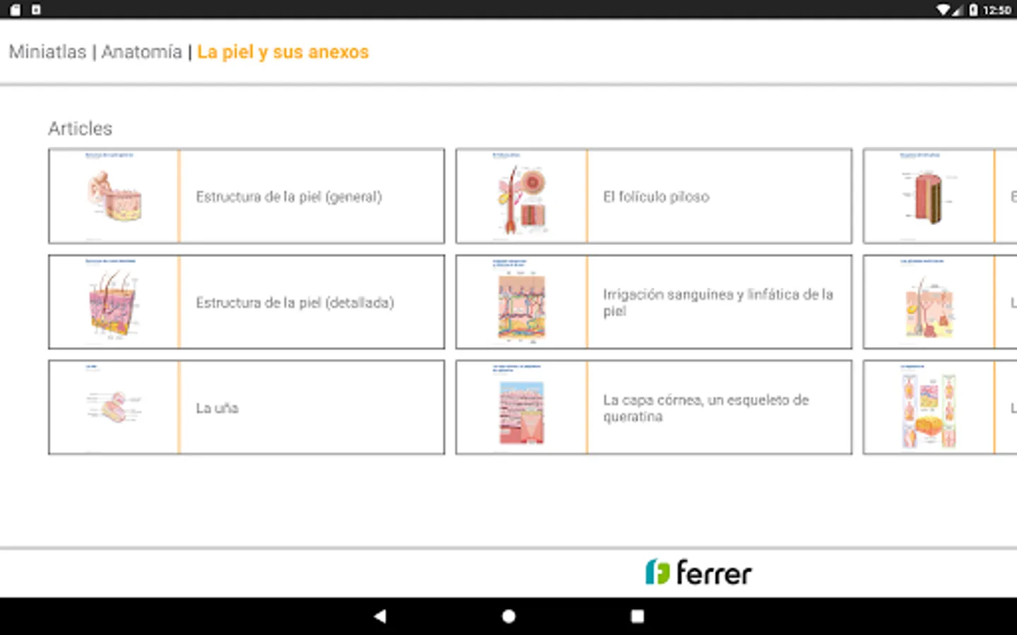 The "Miniatlas Anatomy - AP" application is an atlas of medical illustrations of high quality that is intended for health professionals. The images are helpful both in daily practice and for use in presentations with colleagues. In addition, the application contains the option to print or send images by e-mail.