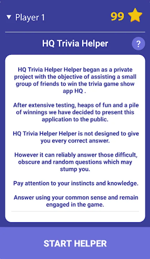 HQ Trivia Helper is not designed to give you every correct answer for the game show HQ Trivia.