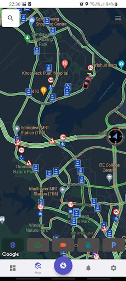 - Latest Singapore traffic incidents (E.g. Roadworks, accidents, congestion, diversion, etc...) and their location on the map.