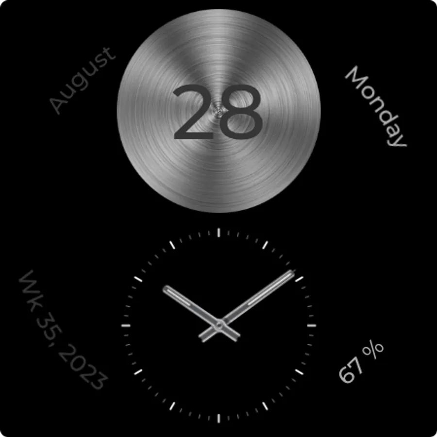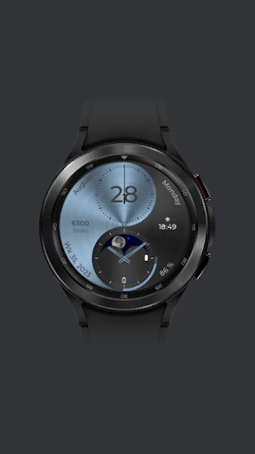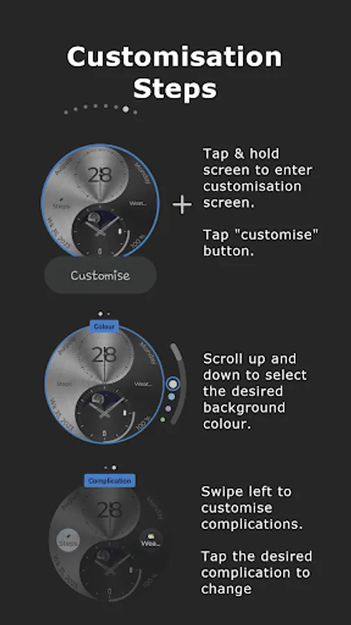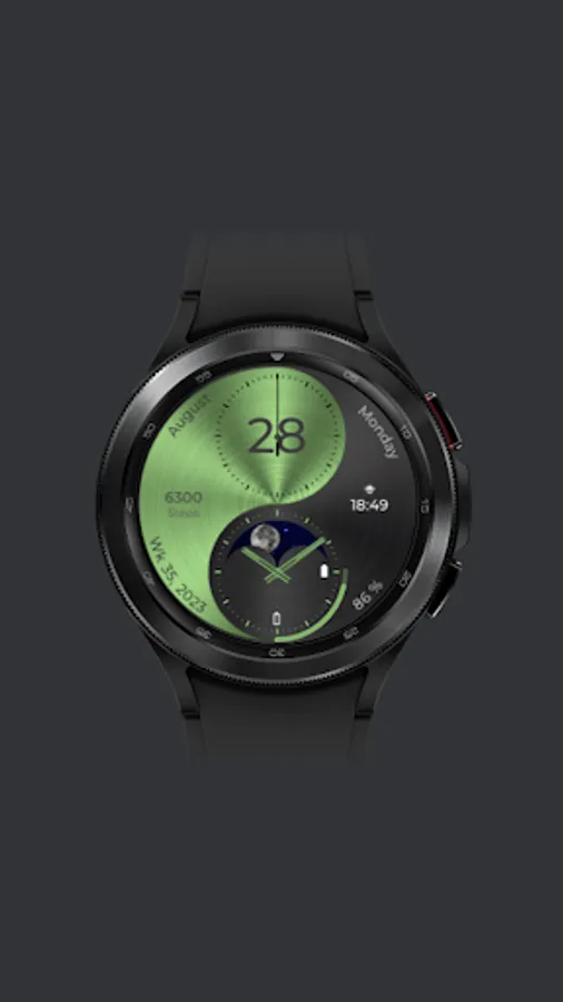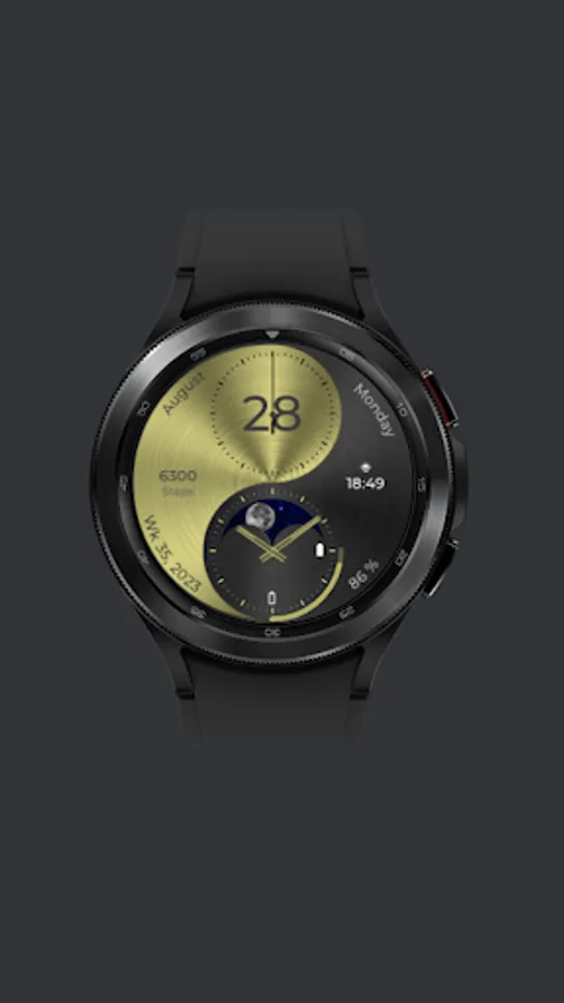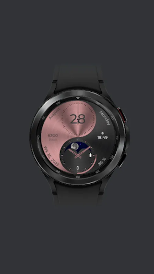 Fusion design Yin Yang watch face allowing user to choose from 6 different colour background.