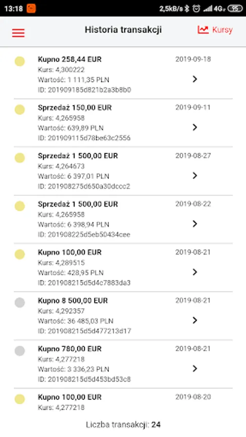 The Liderwalut.pl application allows free currency exchange in an online currency exchange office. Transactions can be concluded without restrictions for 24 hours a day.