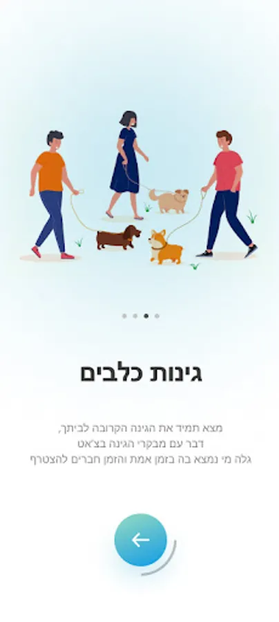 מציאת גינות כלבים קרובות, לדעת מי בגינה, צא'ט עם חברי הגינה, להזמין חברים לטיול עם הכלב.