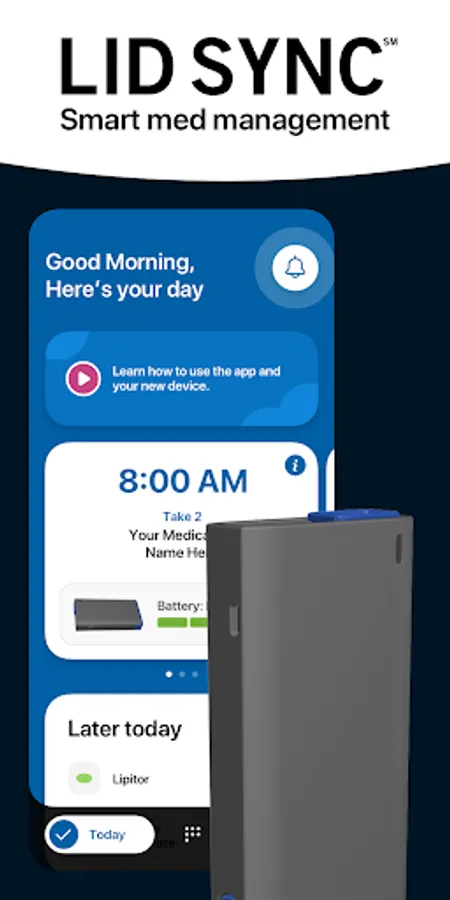 Sticking to your treatment plan can be tricky but Lid Sync, powered by Express Scripts, is here to help you remember your daily medication. This innovative medication device links to the Lid Sync app so you can see when you’ve taken your medication and get on with living your healthiest life. With this app and your online tools, you can: