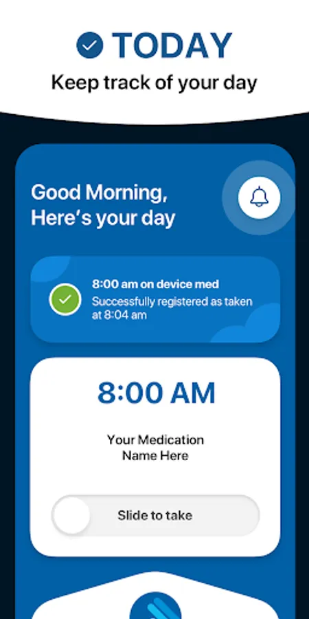 * Keep track of your medication with the device that sends a signal to the app every time you take your daily dose.