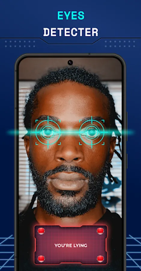 Eyes scanner is a funny way to detect whether you tell the truth or lie. You have to focus your eyes on the screen and Lie Detector Test for Prank will analyze if what you are saying is a lie or a truth.