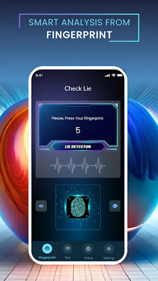- Voice Analysis: If you still find fingerprint or eye scanning not satisfying, you can try the voice analysis mode. Simply press the record button to start recording your speech and responses. The lie detector test truth app will determine if you're lying or telling the truth.
