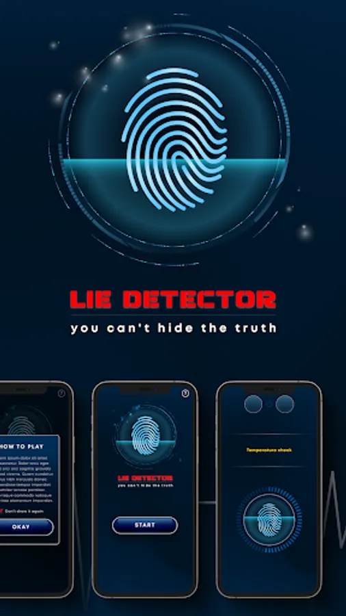 The Lie Detector Simulator Prank includes a fake Truth Polygraph mode and a Lie Detector by Fingerprint mode. Users can choose to simulate a truth test, in which they answer questions honestly, or a deception test, in which they intentionally provide false responses to fool the app.