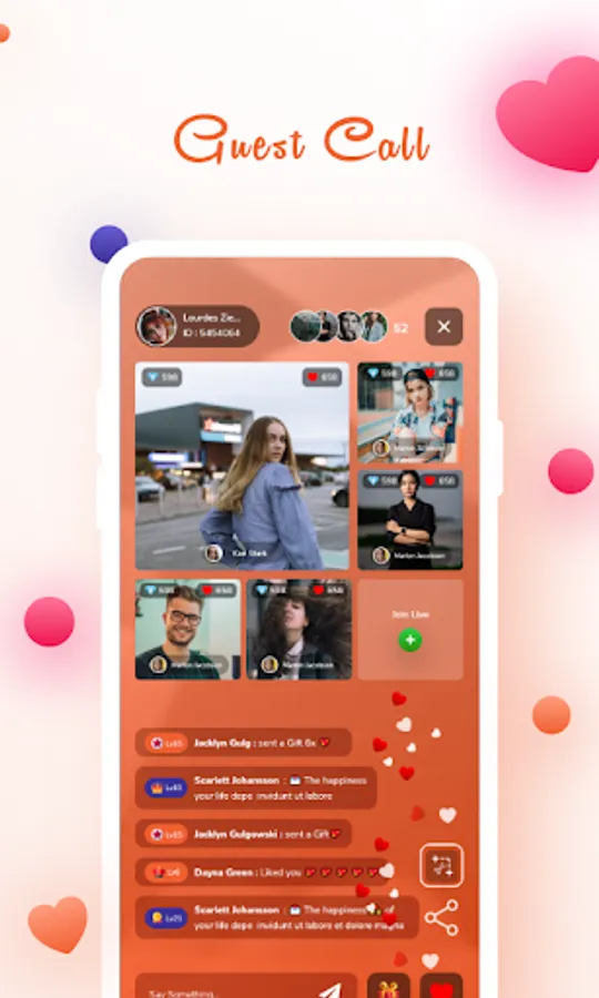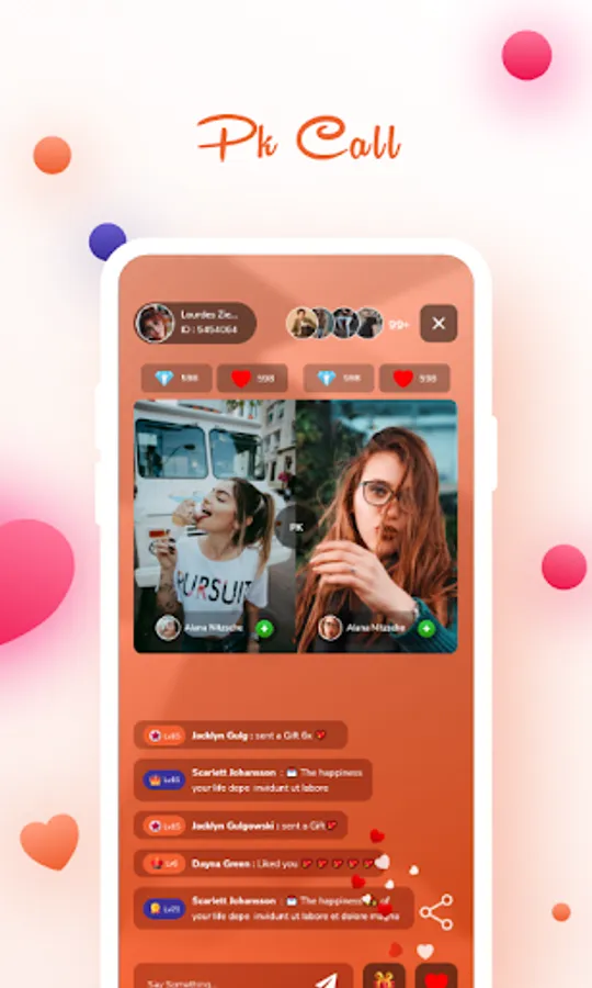 Enjoy full screen broadcasting with 2 people as guests. Host can play PK also in the same mode.