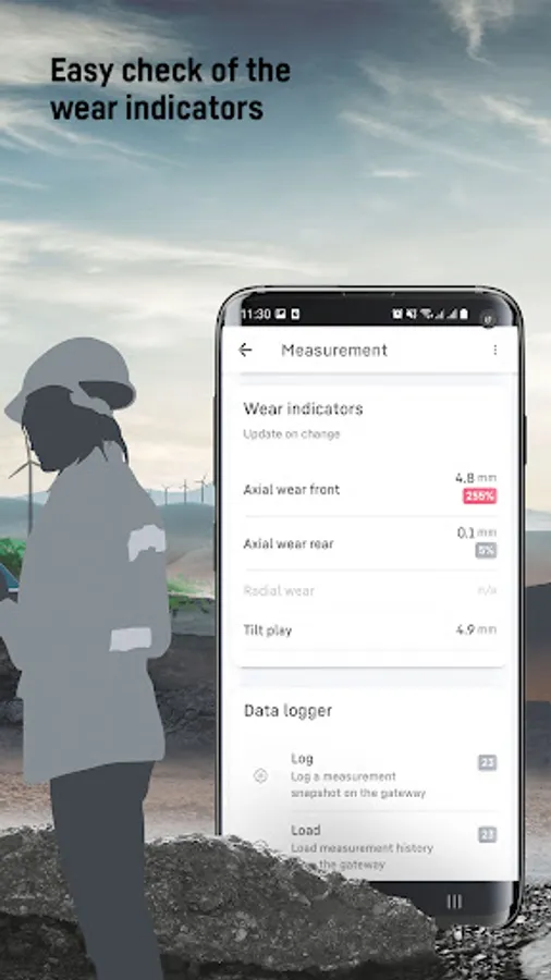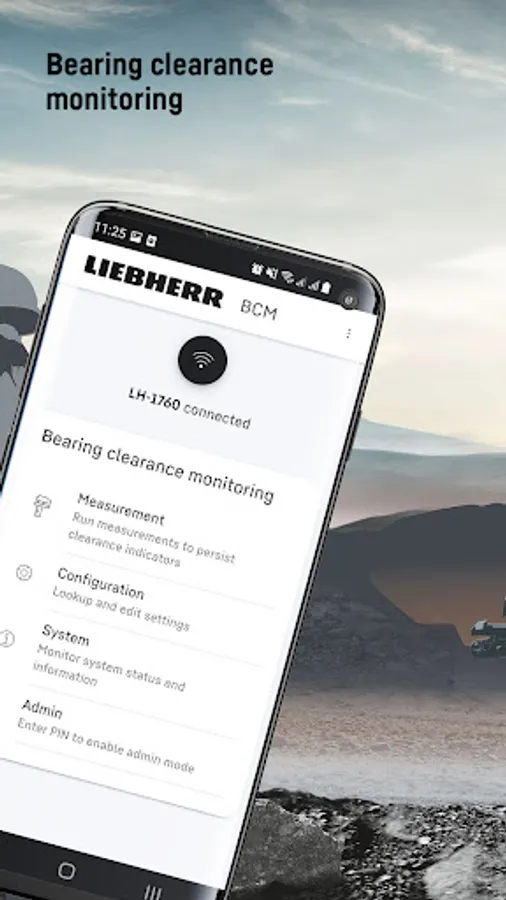 No time for downtime! You want to reliably measure the clearance of your bearings from a safe location? We have the helper you were always looking for! The app for smart bearing condition monitoring by Liebherr makes the clearance measurement of your slewing bearings easy and safe: during the measurement, no personnel are needed directly at the device in the danger zone. Your downtimes are reduced by the integrated system and you remain independent in your measurement times as well as from external services. Smart, integrated and remote, the app for the bearing condition monitoring is a small helper with great effects.