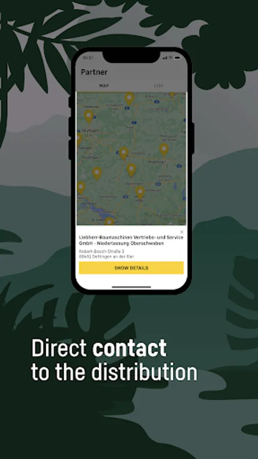 - The app gives you the opportunity to contact our sales and service partners directly. In the 'Partners' area, all contact personnel are displayed in a list view with an alternative map view available. If you have enabled the GPS function in the settings, your location will also be displayed. You can also save any selected contact persons directly in your own contacts.